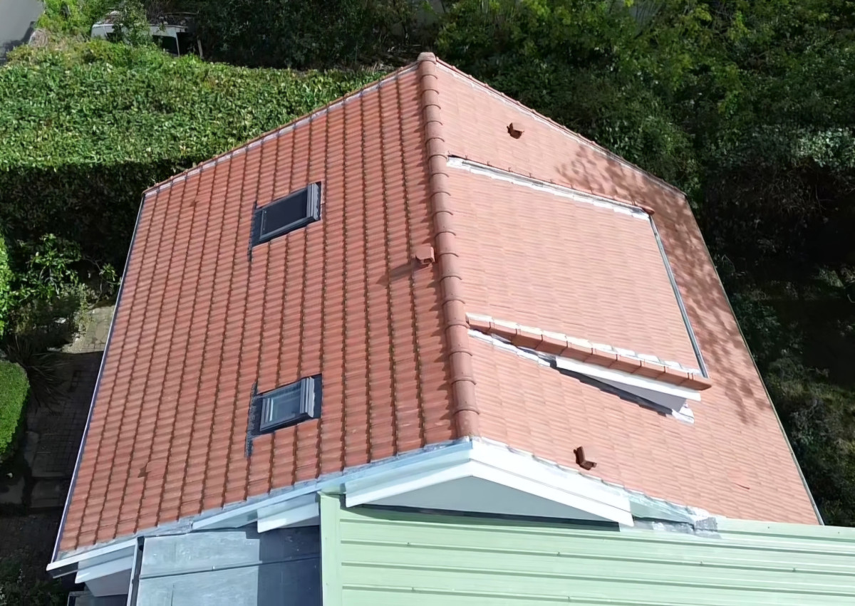 Rénovation de toiture à Ivry-sur-Seine ( surface 85 m2, tuiles PV10 EDILIANS ) avec isolation doublage et traitement de charpente gouttière en zinc et mise en peinture des dessous de toit installation de deux fenêtres de toit Velux isolation extérieure et ravalement sur pignon terminé, la météo fut très favorable le chantier a donc été terminé plus tôt que prévu.